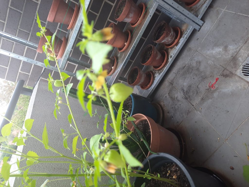 Sadly the bottle gourds leaves got eaten and now the bottle gourd vine is dying. African horned melon still holding on there but also getting eaten by I assume slugs…